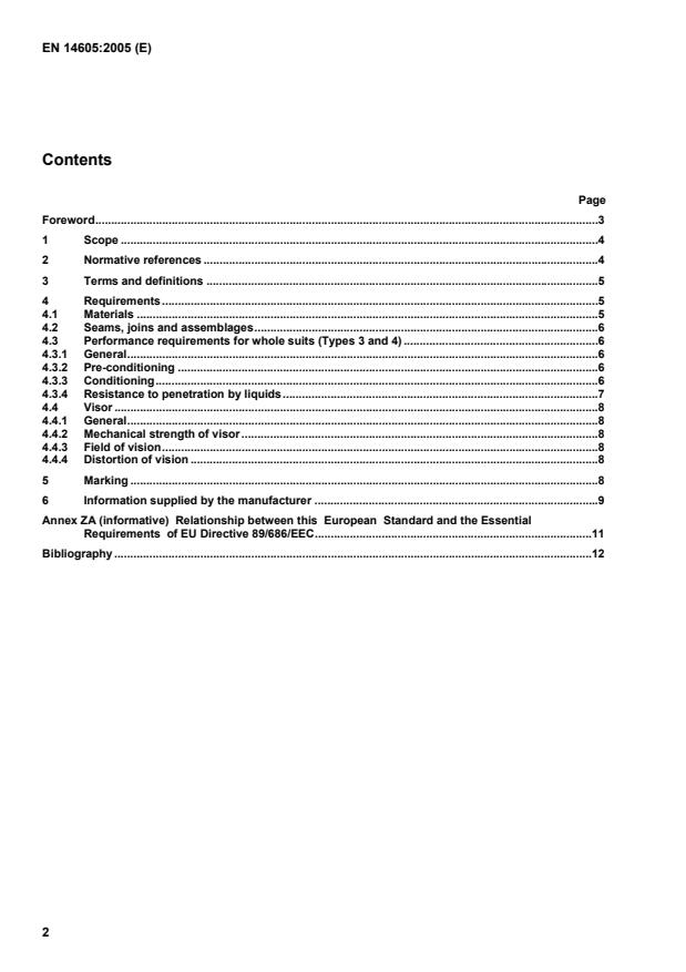 Examples of such clothing are one-piece coveralls or two-piece suits, with or without hood or visors, with or without boot-socks or over-boots, with or without gloves; Partial body protection garments offering protection to specific parts of the body against permeation of chemical liquids. Examples of such garments are e.g. laboratory coats, jackets, trousers, aprons, sleeves, hoods (not air-supplied) etc. As partial body protection leaves some parts of the body unprotected this document specifies only the performance requirements for the clothing material and the seams. NOTE Partial body chemical protective garments which offer only protection against penetration of chemical liquids are within the scope of EN 13034 (Type PB [6] clothing). 2 Normative references The following referenced documents are indispensable for the application of this document. For dated references, only the edition cited applies. For undated references, the latest edition of the referenced document (including any amendments) applies. EN 340:2003, Protective clothing — General requirements. EN 463, Protective clothing - Protection against liquid chemicals - Test method: Determination of resistance to penetration by a jet of liquid (Jet Test). EN 468, Protective clothing - Protection against liquid chemicals - Test method: Determination of resistance to penetration by spray (Spray Test). EN 12941:1998, Respiratory protective devices - Powered filtering devices incorporating a helmet or a hood - Requirements, testing, marking. EN 14325:2003, Protective clothing against chemicals — Test methods and performance classification of chemical protective clothing materials, seams, joins and assemblages. EN 23758, Textiles - Care labelling code using symbols (ISO 3758:1991). EN 31092, Textiles — Determination of physiological properties — Measurement of thermal and water-vapour resistance under steady-state conditions (sweating guarded - hotplate test) (ISO 11092:1993). CEN ISO/TR 11610:2004, Protective clothing - Vocabulary (ISO/TR 11610:2004). ISO 7000, Graphical symbols for use on equipment — Index and synopsis.