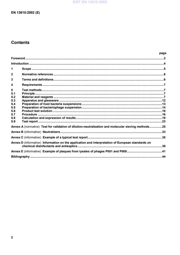 EN 13610:2002 is a standard published by the European Committee for Standardization (CEN). Its full title is "Chemical disinfectants - Quantitative suspension test for the evaluation of virucidal activity against bacteriophages of chemical disinfectants used in food and industrial areas - Test method and requirements (phase 2, step 1)". This standard covers: This European Standard specifies a test method (phase 2, step 1) and requirements for the minimum virucidal activity against bacteriophages of chemical disinfectants that form a homogeneous, physically stable preparation in hard water and that are used in food and industrial areas, excluding areas and situations where disinfection is medically indicated and excluding products used on living tissues. This European Standard applies to least to the following: a) processing, distribution and retailing of:...