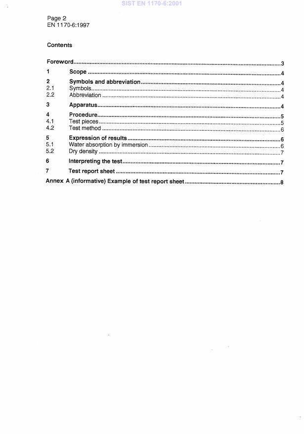 EN 1170-6:1997 is a standard published by the European Committee for Standardization (CEN). Its full title is "Precast concrete products - Test method for glass-fibre reinforced cement - Part 6: Determination of the absorption of water by immersion and determination of the dry density". This standard covers: This European Standard specifies a test for determining the dry density and water absorption of a given GRC composition.