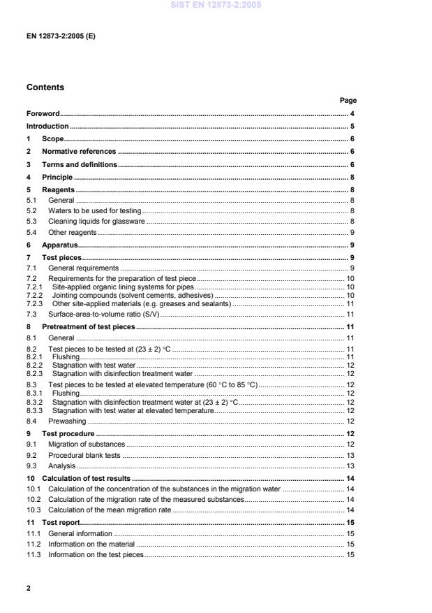 EN 12873-2:2005 is a standard published by the European Committee for Standardization (CEN). Its full title is "Influence of materials on water intended for human consumption - Influence due to migration - Part 2: Test method for non-metallic and non-cementitious site-applied materials". This standard covers: This European Standard specifies a procedure to determine the migration of substances from non-metallic and non-cementitious site-applied materials for use in contact with water intended for human consumption. It is applicable to site-applied materials intended to be used under various conditions for the transport and storage of water intended for human consumption, including raw water used for the production of water intended for human consumption. It covers the extraction by water of constituents from these materials after their application on site. The standard is applicable to materials whose physical or chemical properties alter during or after on-site application, such as coatings, paints, and adhesives. In addition, some site-applied materials that do not change in such a manner, e.g. greases or lubricants, are also included.