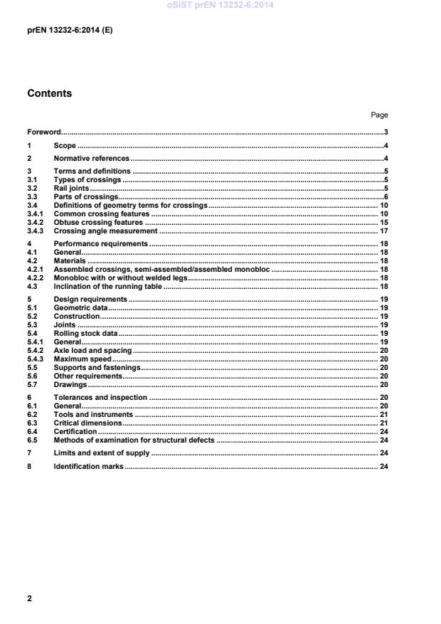 prEN 13232-6 rev is a draft published by the European Committee for Standardization (CEN). Its full title is "Railway applications - Track - Switches and crossings for Vignole rails - Part 6: Fixed common and obtuse crossings". This standard covers: The same as for EN 13232-6:2005+A1:2011
