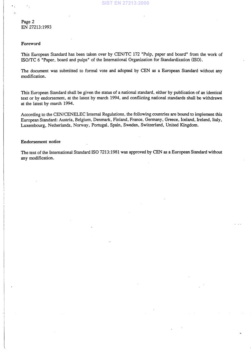 Foreword ISO (the International Organization for Standardization) is a worldwide federation of national Standards institutes (ISO member bodies). The work of developing Inter- national Standards is carried out through ISO technical committees. Every member body interested in a subject for which a technical committee has been set up has the right to be represented on that committee. International organitations, governmental and non-governmental, in liaison with ISO, also take part in the work. Draft International Standards adopted by the technical committees are circulated to the member bodies for approval before their acceptance as International Standards by the ISO Council. International Standard ISO 7213 was developed by Technical Committee lSO/TC 6, Paper, board andpulps, and was circulated to the member bodies in November 1980. lt has been approved by the member bodies of the following countries : Australia Austria Belgium Brazil Bulgaria Canada Chile China Czechoslovakia Egypt, Arab Rep. of Mand %ance Jermany, F. R. -lungary ndia w taly