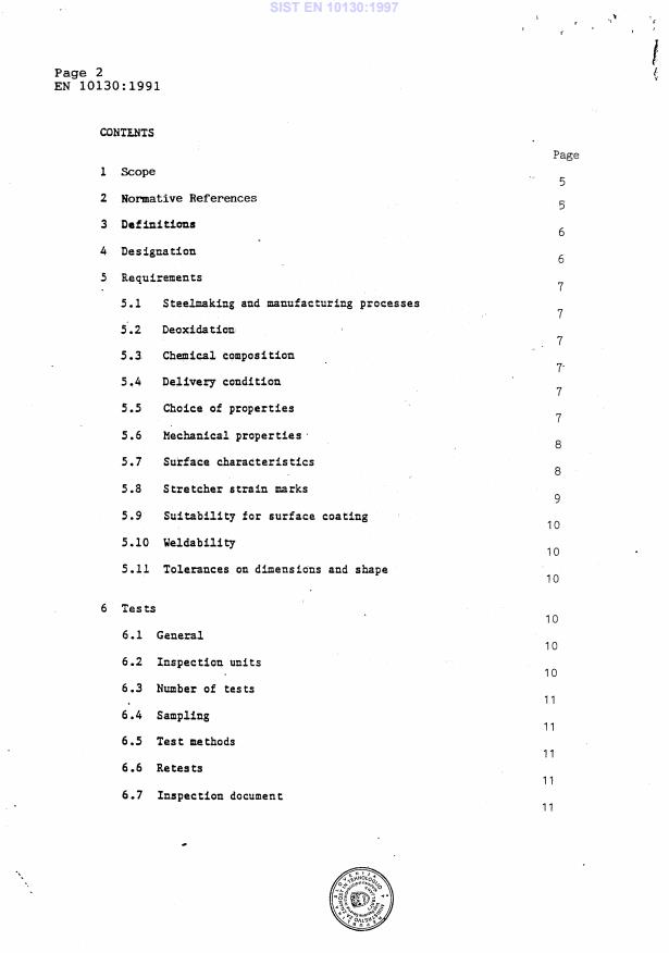 EN 10130:1991 is a standard published by the European Committee for Standardization (CEN). Its full title is "Cold rolled low carbon steel flat products for cold forming - Technical delivery conditions". This standard covers: [As modified by Amendment A1 :1998] This European Standard applies to cold-rolled non-coated low carbon steel flat products in rolled widths equal to or over 600 mm for cold forming, with a minimum thickness of 0,35 mm, and unless otherwise agreed at the time of the order, equal to or less than 3 mm, delivered in sheet, coil, slit coil, or cut lengths obtained from slit coil or sheet. It does not apply to cold-rolled narrow strip (rolling width < 600 mm) nor to flat cold-rolled products for which there is a specific standard in particular the following: - cold-rolled non-grain oriented magnetic steel sheet and strip (EN 10106); - semi-processed steel strip for the construction or magnetic circuits CEN 10126 and EN 10165); - blackplate in coils (EN 10205); - steel sheet and strip for welded gas cylinders (EN 10120); - hot-rolled flat products in high yield strength steels for cold forming EN 10149-2-3); - cold-rolled flat products in high yield strength steels for cold forming (prEN 10268); - cold-rolled uncoated non alloy mild steel narrow strip for cold forming (pr EN 10139); - cold-rolled low carbon steel flat products for vitreous enamelling (EN 10209); - cold-rolled structural steels for general purposes.