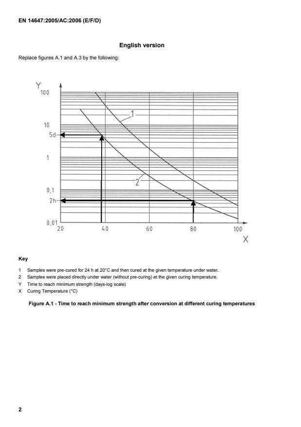 Key 1 Samples were pre-cured for 24 h at 20°C and then cured at the given temperature under water. 2 Samples were placed directly under water (without pre-curing) at the given curing temperature. Y Time to reach minimum strength (days-log scale) X Curing Temperature (°C) Figure A.1 - Time to reach minimum strength after conversion at different curing temperatures