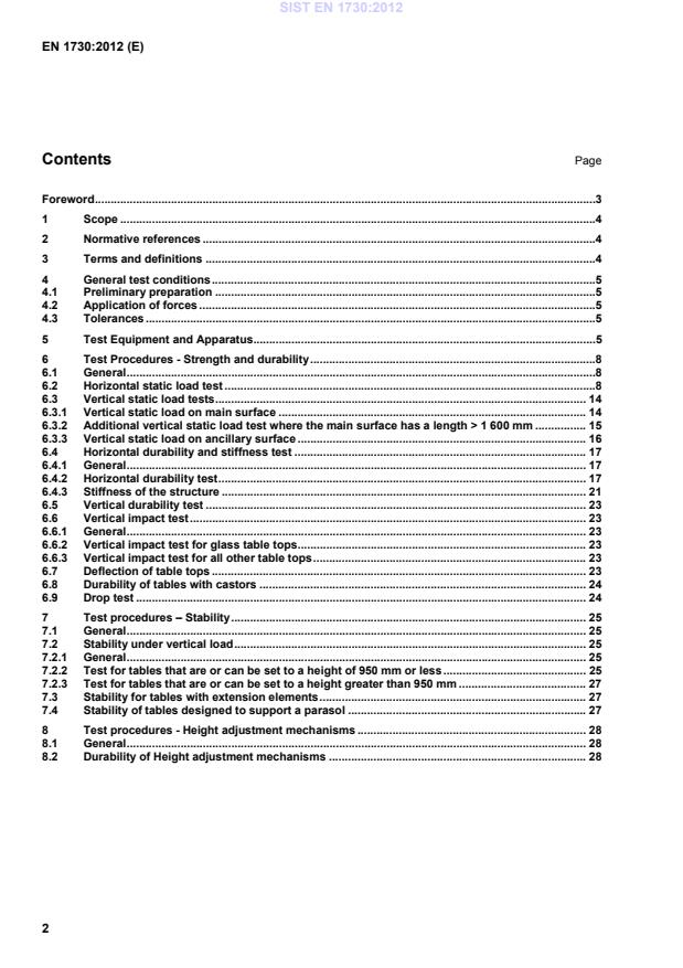 Work Tables and Desks and EN 15372, Non-domestic tables. A durability test for tables with castors has been added. A durability test for height adjustment mechanisms has been added. Wherever possible test methods have been simplified and clarified for ease of use. According to the CEN/CENELEC Internal Regulations, the national standards organisations of the following countries are bound to implement this European Standard: Austria, Belgium, Bulgaria, Croatia, Cyprus, Czech Republic, Denmark, Estonia, Finland, Former Yugoslav Republic of Macedonia, France, Germany, Greece, Hungary, Iceland, Ireland, Italy, Latvia, Lithuania, Luxembourg, Malta, Netherlands, Norway, Poland, Portugal, Romania, Slovakia, Slovenia, Spain, Sweden, Switzerland, Turkey and the United Kingdom. SIST EN 1730:2012