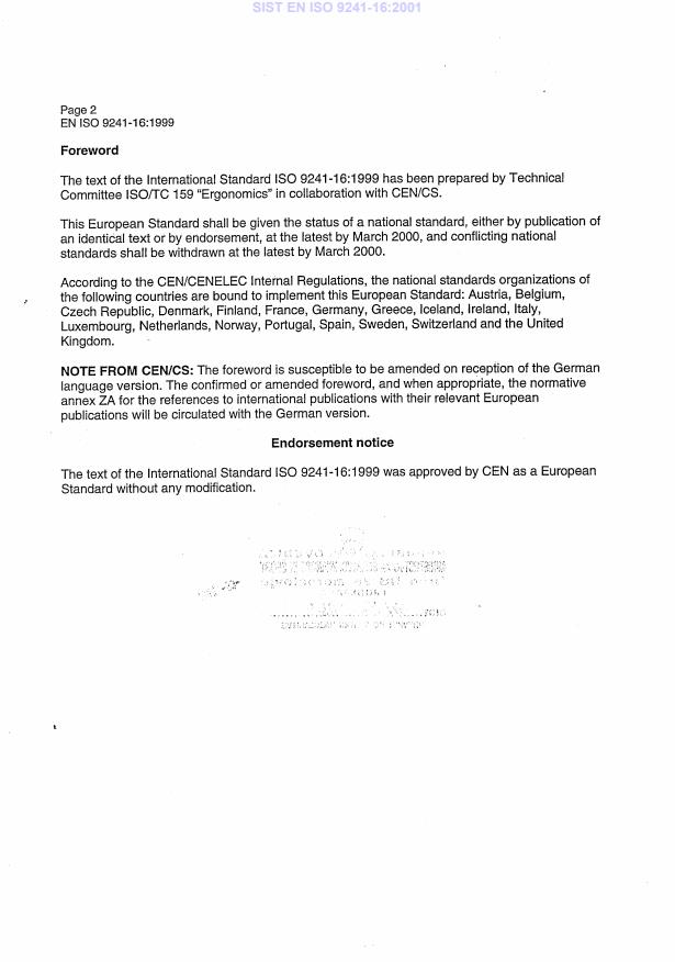 EN ISO 9241-16:1999 is a standard published by the European Committee for Standardization (CEN). Its full title is "Ergonomic requirements for office work with visual display terminals (VDTs) - Part 16: Direct manipulation dialogues (ISO 9241-16:1999)". This standard covers: Migrated from Progress Sheet (TC Comment) (2000-07-10): Following BT 125/1992, this part of ISO 9241 will undergo a parallel CEN/ISO ++ voting procedure.