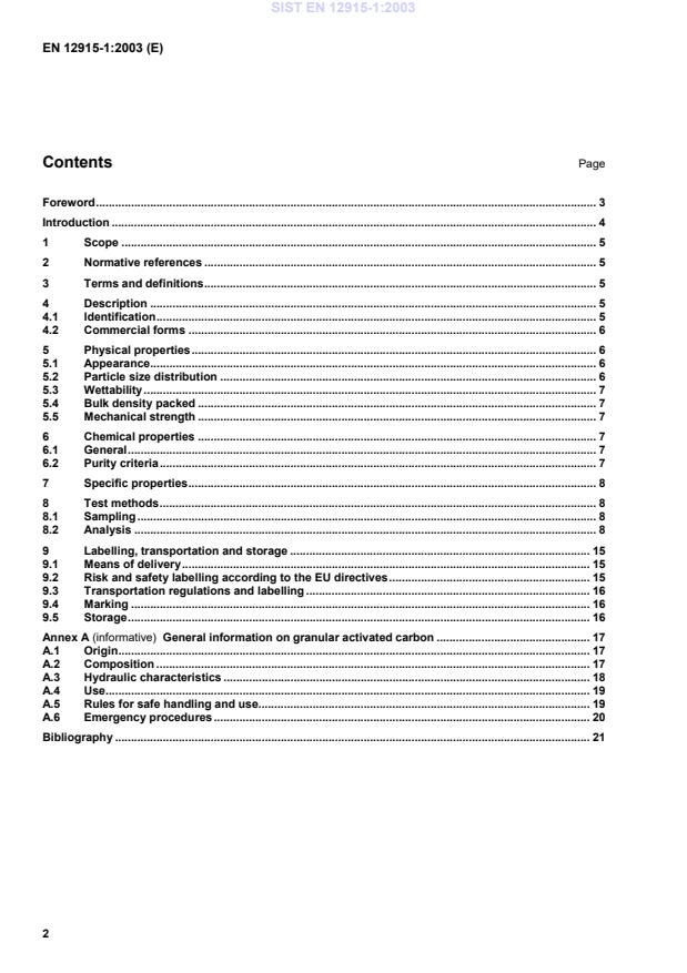 General information on granular activated carbon.17A.1Origin.17A.2Composition.17A.3Hydraulic characteristics.18A.4Use.19A.5Rules for safe handling and use.19A.6Emergency procedures.20Bibliography.21SIST EN 12915-1:2003