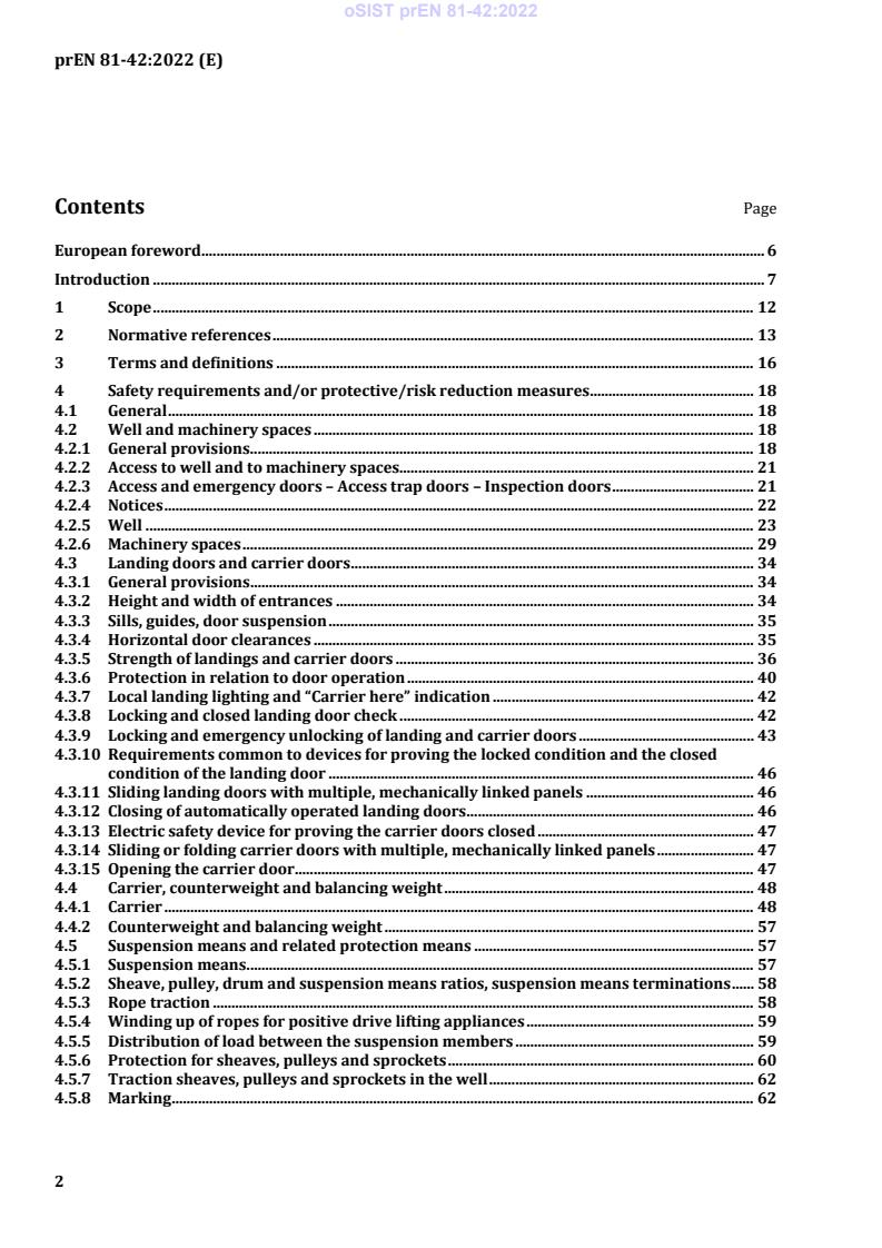 - Safety systems and components (detailed in the standard): landing and carrier doors, carrier construction, counterweights, suspension means, guide rails, safety gear and overspeed devices, rupture valves, protection against unintended movement and creeping.