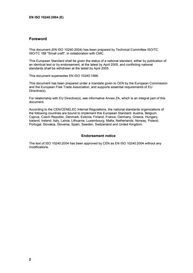 EN ISO 10240:2004 is associated with the following European legislation: EU Directives/Regulations: 2003/44/EC, 2013/53/EU, 94/25/EC; Standardization Mandates: M/075. When a standard is cited in the Official Journal of the European Union, products manufactured in conformity with it benefit from a presumption of conformity with the essential requirements of the corresponding EU directive or regulation.