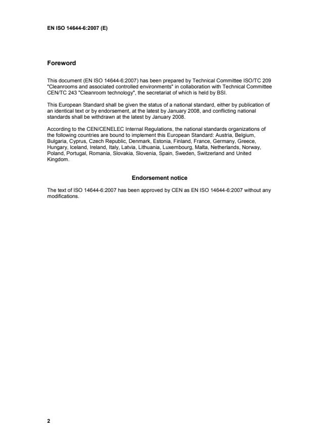 The text of ISO 14644-6:2007 has been approved by CEN as EN ISO 14644-6:2007 without any
