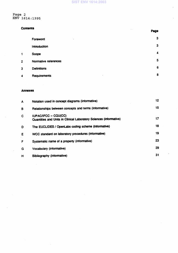 ENV 1614:1995 is a standardization document published by the European Committee for Standardization (CEN). Its full title is "Healthcare informatics - Structure for nomenclature, classification, and coding of properties in clinical laboratory sciences". This standard covers: This Prestandard provides a coherent system of concepts underlying systematic names, classifications, and coding for properties, including quantities, in clinical laboratory sciences. The system is intended to facilitate the communication of messages about such properties through computing and telecommunications equipment.