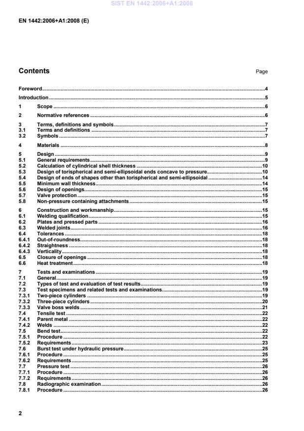 For ends convex to pressure, the minimum end thickness shall be not less than 2 times that required by 5.2. 5.5 Minimum wall thickness The minimum wall thickness of the cylindrical shell and ends shall be not less than the greater of: the values of a and b determined in accordance with 5.2 and 5.3 or 5.4, as appropriate, or the following values, as appropriate: for D < 100 mm: 1,1 mm for 100 mm < D < 150 mm: [1,1 + 0,008 (D-100)] mm for D > 150 mm: [0,7250 +D] mm, but not less than 1,5 mm. These equations apply to cylindrical shells and ends irrespective of whether they are designed by calculation as specified in 5.2 and 5.3 or by testing as specified in 5.4. SIST EN 1442:2006+A1:2008