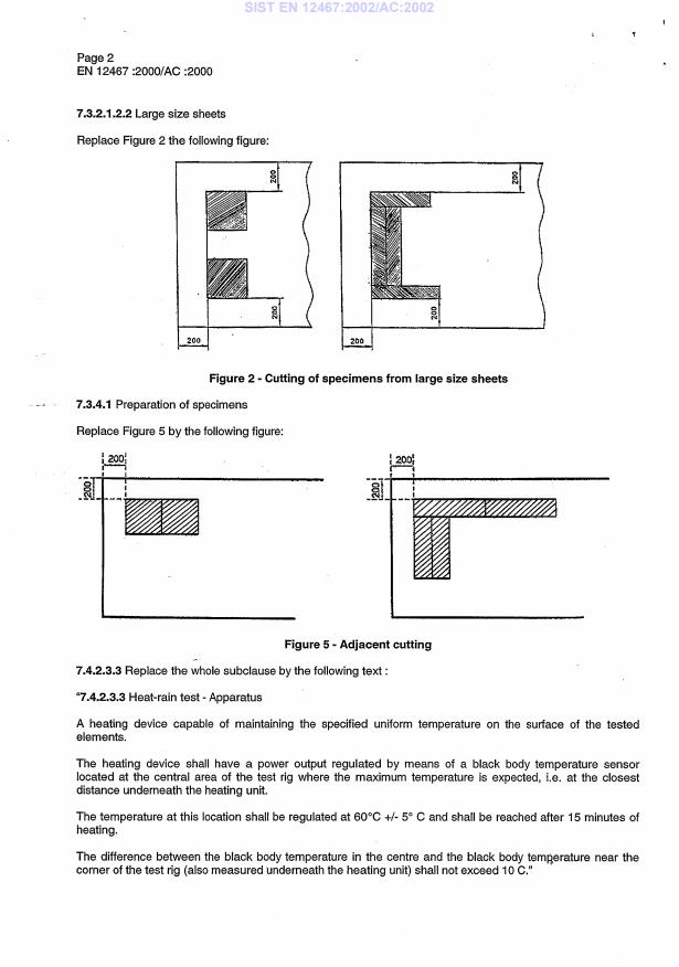 EN 12467:2000/AC:2000 is a corrigendum published by the European Committee for Standardization (CEN). Its full title is "Fibre-cement flat sheets - Product specifications and test methods". This standard covers: TC - Modification to a test method - Modifications to Figures 2 and 5 - Modification to Danish A-Deviation