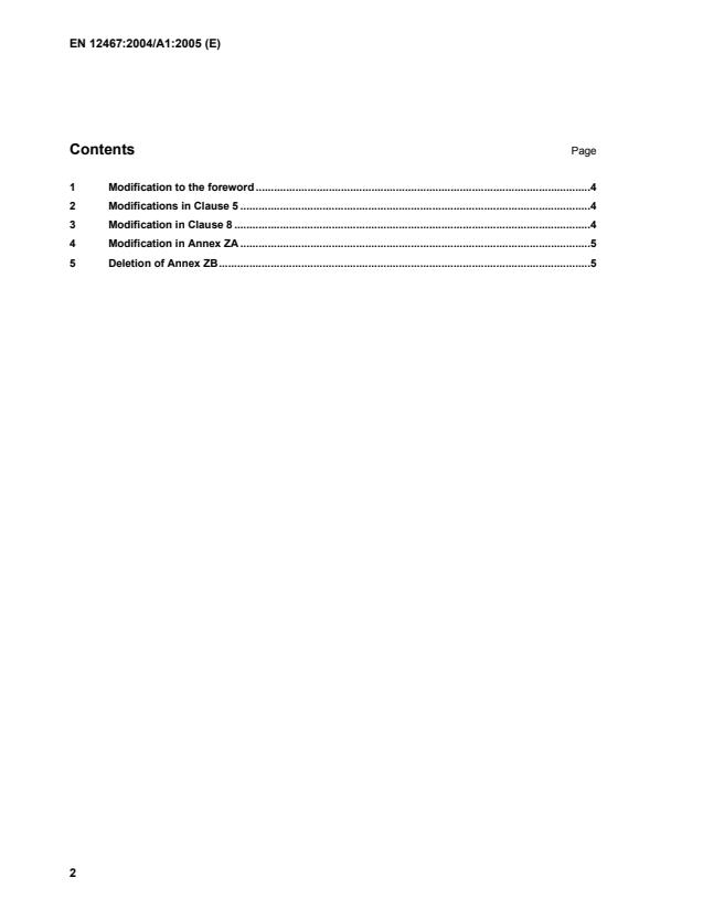 This amendment A1 modifies the European Standard EN 12467:2004; it was approved by CEN on 20 July 2005.