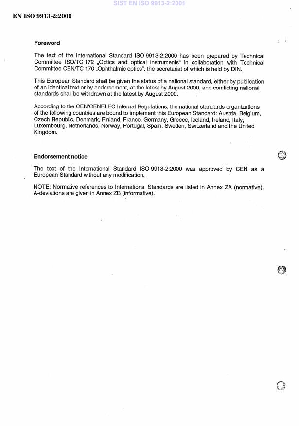 ISO9913-2:2000(E)PDFdisclaimerThisPDFfilemaycontainembeddedtypefaces.InaccordancewithAdobe'slicensingpolicy,thisfilemaybeprintedorviewedbutshallnotbeeditedunlessthetypefaceswhichareembeddedarelicensedtoandinstalledonthecomputerperformingtheediting.Indownloadingthisfile,partiesacceptthereintheresponsibilityofnotinfringingAdobe'slicensingpolicy.TheISOCentralSecretariatacceptsnoliabilityinthisarea.AdobeisatrademarkofAdobeSystemsIncorporated.DetailsofthesoftwareproductsusedtocreatethisPDFfilecanbefoundintheGeneralInforelativetothefile;thePDF-creationparameterswereoptimizedforprinting.EverycarehasbeentakentoensurethatthefileissuitableforusebyISOmemberbodies.Intheunlikelyeventthataproblemrelatingtoitisfound,pleaseinformtheCentralSecretariatattheaddressgivenbelow.©ISO2000Allrightsreserved.Unlessotherwisespecified,nopartofthispublicationmaybereproducedorutilizedinanyformorbyanymeans,electronicormechanical,includingphotocopyingandmicrofilm,withoutpermissioninwritingfromeitherISOattheaddressbeloworISO'smemberbodyinthecountryoftherequester.ISOcopyrightofficeCasepostale56CH-1211Geneva20Tel.+41227490111Fax+41227341079E-mailcopyright@iso.chWebwww.iso.chPrintedinSwitzerlandii©ISO2000–AllrightsreservedSIST EN ISO 9913-2:2001