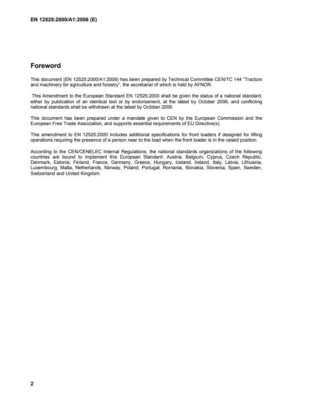 This document (EN 12525:2000/A1:2006) has been prepared by Technical Committee CEN/TC 144 “Tractors
