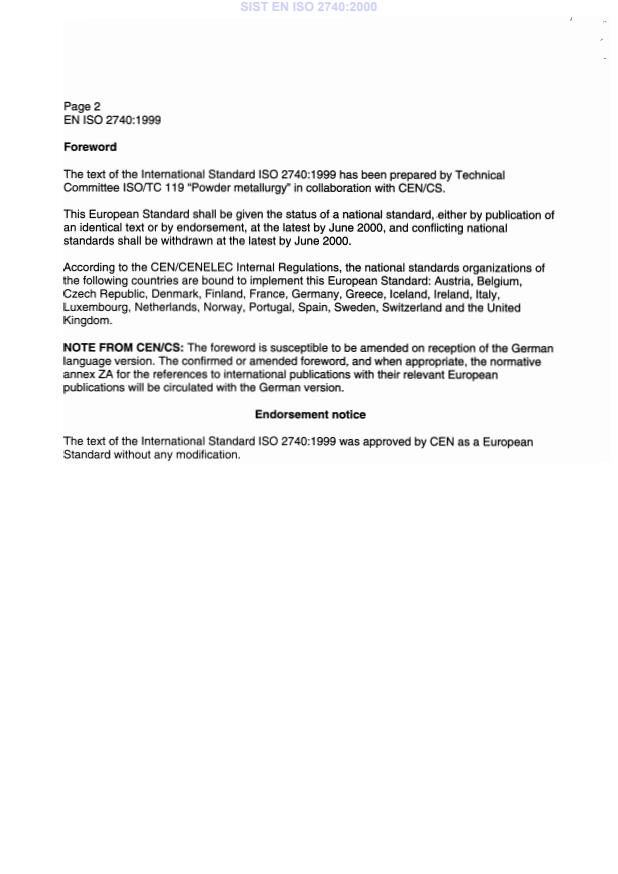 International Standard ISO 2740 was prepared by Technical Committee ISO/TC 119, Powder metallurgy,