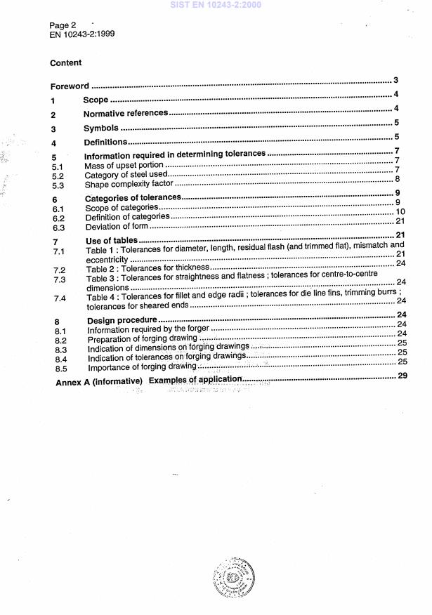 Diese Europäische Norm legt die Maßtoleranzen für Gesenkschmiedeteile aus Stahl, hergestellt auf Waagerecht-Stauchmaschinen, fest. Der zweite Teil dieser Europäischen Norm gilt für warm-gestauchte Schmiedeteile im Lieferzustand, hergestellt aus Kohlenstoff- und legiertem Stahl. Die angegebenen Toleranzen gelten für Schmiedeteile, die 250 kg Masse oder 2.500 mm max. Abmessung nicht überschreiten. Toleranzen für schwere oder größere Schmiedeteile sind Verhandlungssache.