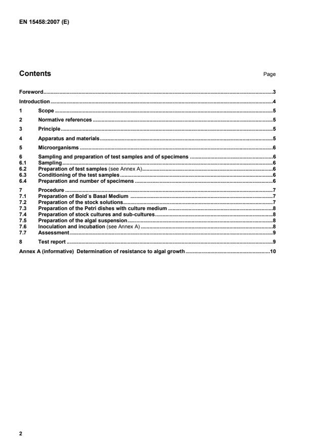 EN 15458:2007 is a standard published by the European Committee for Standardization (CEN). Its full title is "Paints and varnishes - Laboratory method for testing the efficacy of film preservatives in a coating against algae". This standard covers: This European standard specifies a laboratory test method for determining the biocidal/biostatic efficacy of film preservatives in a coating against algal growth. The standard does not apply to coatings not susceptible to algal growth. The test method comprises only film preservation, not the protection of the substrate itself, e.g. wood, which is dealt with in another standard. The test method is applicable for wood and masonry coatings. It is not applicable to marine coatings. Safety, health and environmental aspects are not in the scope of this standard.