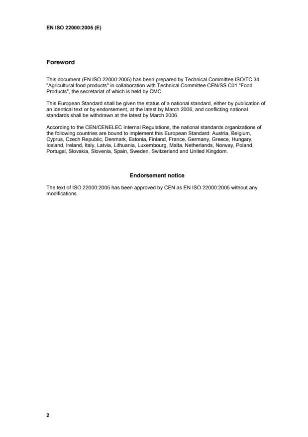 Food safety management systems - Requirements for any organization in the food chain (ISO 22000:2005)