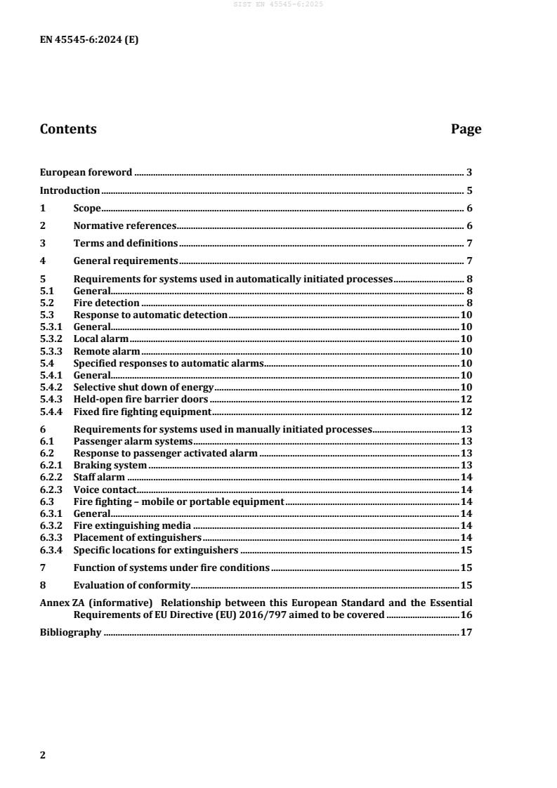 Ta dokument določa zahteve za odkrivanje požara, alarmne sisteme, izklapljanje opreme, informacijske in komunikacijske sisteme, zasilno razsvetljavo, sisteme za zaviranje v sili ter protipožarne sisteme, ki so opredeljeni v standardu EN 45545-1:2013.