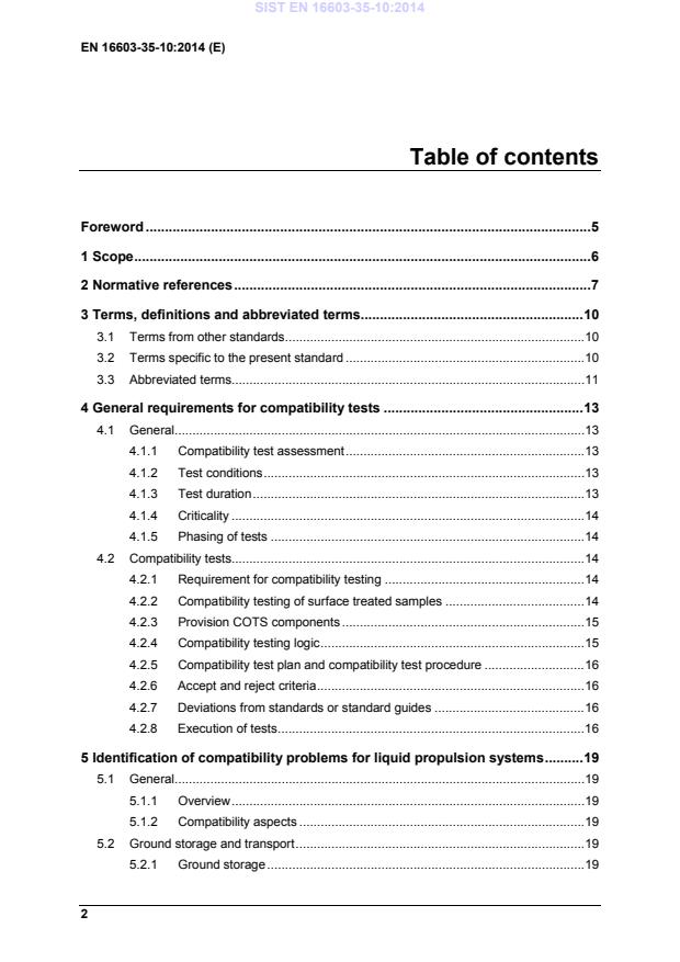• establishes the test requirements. The standard is applicable to the design and the qualification of liquid propulsion components, sub-systems and systems and can be applied to their development; it also applies to COTS items procured for the propulsion system. From the tests described in this standard the effects of interactions of space propulsion materials and fluids on the components, subsystems and systems can be established. In this way it can be assured that the component, subsystem or system satisfies the requirements. This standard is limited to tests on component-, subsystem- and system-level. Only for those cases where new materials, substances or conditions are involved for which there is no experience or data available, the performance of screening tests is specified. This standard may be tailored for the specific characteristic and constrains of a space project in conformance with ECSS-S-ST-00. SIST EN 16603-35-10:2014