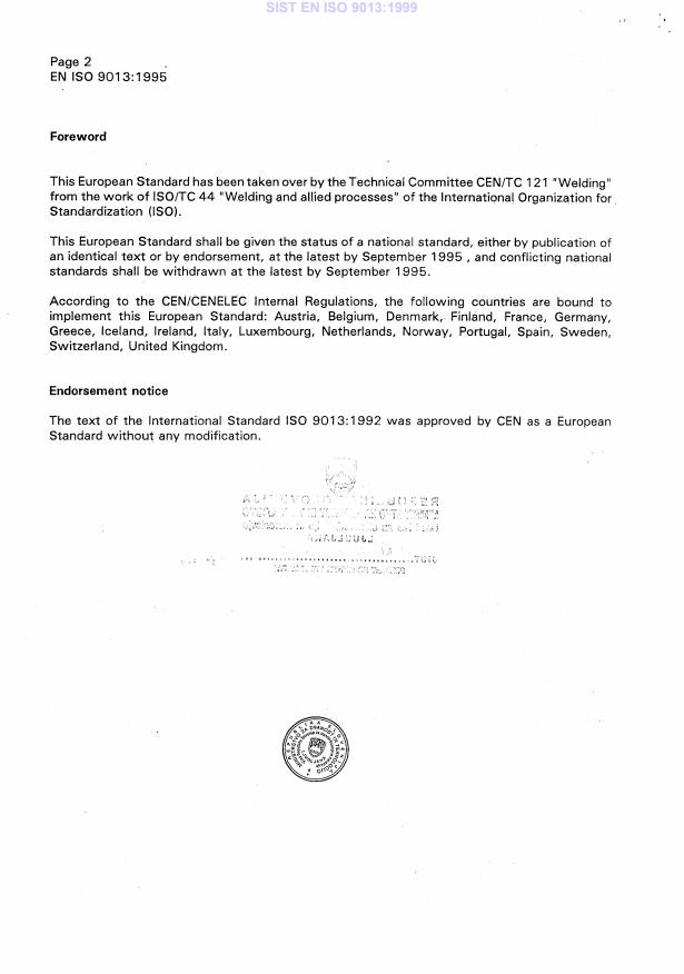 EN ISO 9013:1995 is a standard published by the European Committee for Standardization (CEN). Its full title is "Welding and allied processes - Quality classification and dimensional tolerances of thermally cut (oxygen/fuel gas flame) surfaces (ISO 9013:1992)". This standard covers: Migrated from Progress Sheet (TC Comment) (2000-07-10): Stage 41 = PQ
