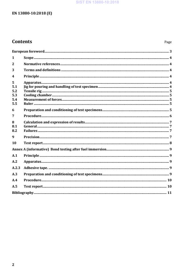 Bond testing after fuel immersion . 9 A.1 Principle . 9 A.2 Apparatus . 9 A.2.3 Adhesive tape. . 9 A.3 Preparation and conditioning of test specimens . 9 A.4 Procedure. 10 A.5 Test report . 10 Bibliography . 11