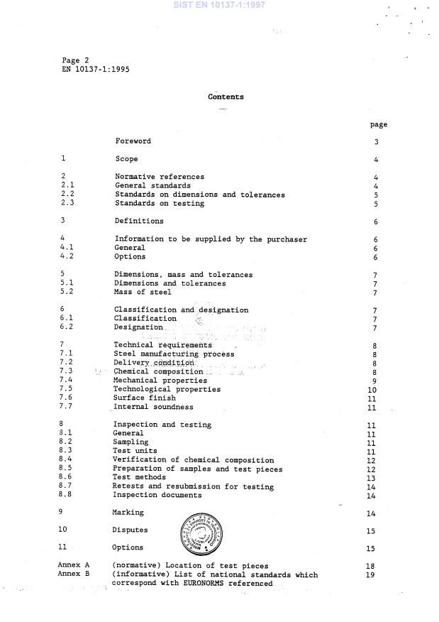 EN 10137-1:1995 is a standard published by the European Committee for Standardization (CEN). Its full title is "Plates and wide flats made of high yield strength structural steels in the quenched and tempered or precipitation hardened conditions - Part 1: General delivery conditions". This standard covers: 1.1 This European Standard spe~fies requirements for plates and wide flats of high yield strength alloy special steels. Part 1 of this European Standard specifies the general delivery conditions. Part 2 of this European Standard specifies the delivery conditions for quenched and tempered steels in the grades and qualities given in table 1(chemical composition) and tables 2 and 3 (mechanical properties) of Part 2. Part 3 of this European Standard specifies the delivery conditions for precipitation hardened steels in the grades and qualities given in table 1 (chemical composition) and tables 2 and 3 (mechanical properties)of Part 3. The steels specified in this European Standard are especially intended for use in heavily loaded parts of welded structures such as bridges, flood gates, storage tanks, water supply tanks, buildings, crane structures, etc. for service at ambient and low temperatures. 1.2 This European Standard does not apply to products for pressure vessels and products for which other EURONORMS exist or European Standards dealing with steels for general structural applications exist or are being prepared: - Hot-rolled products of non-alloy structural steels - (see EN 10025). - Semi-finished products for forging in general purpose structural steels - (see EURONORM 30). - Weldable fine grain structural steels - (see EN 10113 Parts 1 - 3). - Structural steels with improved atmospheric corrosion resistance -(see EN 10155). - Flat products in high yield strength steels for cold forming - wide flats, sheet/plate, wide and narrow strip - (see EN 10149 Parts 1 - 3). - Steels for shipbuilding - normal and high strength qualities - (see EURONORM 156). - Hot finished structural hollow sections (see EN 10210-1).