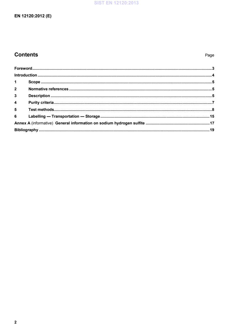 General information on sodium hydrogen sulfite . 17Bibliography . 19 SIST EN 12120:2013