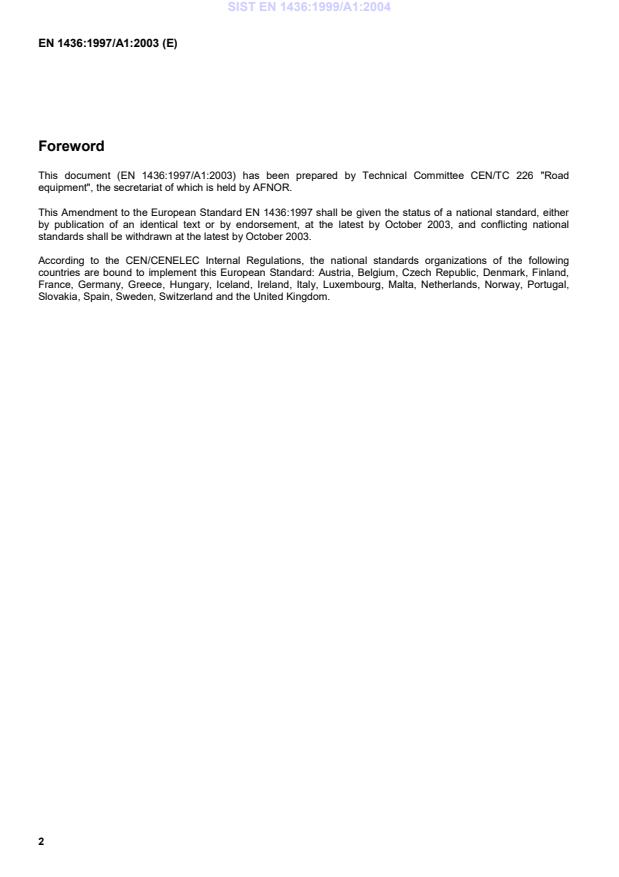 This document (EN 1436:1997/A1:2003) has been prepared by Technical Committee CEN/TC 226 "Road