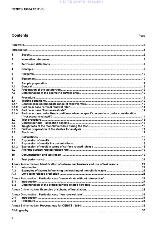 CEN/TS 15864:2012 is a technical specification published by the European Committee for Standardization (CEN). Its full title is "Characterisation of waste - Leaching behaviour test for basic characterisation - Dynamic monolithic leaching test with continuous leachant renewal under conditions relevant for specified scenario(s)". This standard covers: This document is applicable for determining the leaching behaviour of monolithic wastes under dynamic conditions. The test is performed under experimental conditions relevant to assess the leaching behaviour in view of the considered scenario(s). This test is aimed at determining the release as a function of time of inorganic constituents from a monolithic waste, when it is put into contact with an aqueous solution (leachant). In general, the composition, the temperature and the continuous renewal rate of the leachant are chosen such that the leaching behaviour of the waste material can be studied in view of the considered disposal or recovery scenario. When the release is to be determined without any reference to a specific scenario, the leachant is demineralised water, the temperature and the continuous renewal rate are fixed. This Dynamic Monolithic Leaching Test (DMLT) is a parameter specific test as specified in EN 12920 and is then not aimed at simulating real situations. The application of this test method alone is not sufficient for the determination of the detailed leaching behaviour of a monolithic waste under specified conditions. In the framework of EN 12920 and in combination with additional chemical information, the test results are used to identify the leaching mechanisms and their relative importance. The intrinsic properties can be used to predict the release of constituents at a given time frame, in order to assess the leaching behaviour of monolithic waste materials, placed in different situations or scenarios (including disposal and utilisation scenarios). The test method applies to regularly shaped test portions of monolithic wastes with minimum dimensions of 40 mm in all directions, that are assumed to maintain their integrity over a time frame relevant for the considered scenario. The test method applies to test portions for which the geometric surface area can be determined with the help of simple geometric equations. The test method appl