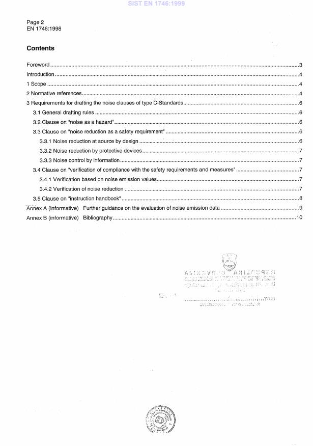 EN 1746:1998 - Safety of machinery: Guidance for the drafting of the noise clauses of safety standards - is a CEN European Standard that provides guidance on how to address machine noise in type C-Standards when noise is identified as a significant hazard (see EN 292-1:1991). EN 1746:1998 supplements the rules given in EN 414:1992, helping Technical Committees draft consistent, practical noise clauses within sector- or machine-specific (type C) safety standards.