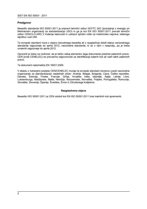Ta slovenski standard je istoveten z: EN ISO 50001:2011