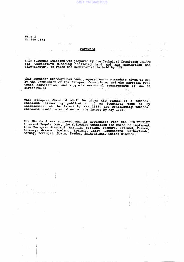 EN 368:1992 is associated with the following European legislation: EU Directives/Regulations: 2014/90/EU, 89/686/EEC, 96/98/EC; Standardization Mandates: M/BC/CEN/88/10. When a standard is cited in the Official Journal of the European Union, products manufactured in conformity with it benefit from a presumption of conformity with the essential requirements of the corresponding EU directive or regulation.