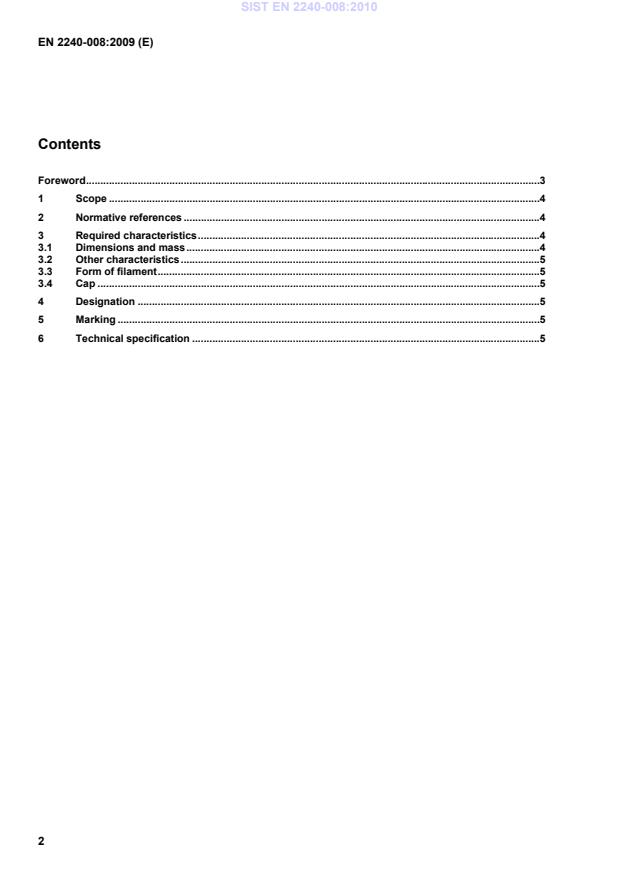 - Normative linkage: References EN 2240-001 (technical specification), EN 2240-002 (main characteristics), EN 2241 (lamp base dimensions) and EN 2756 (test methods).