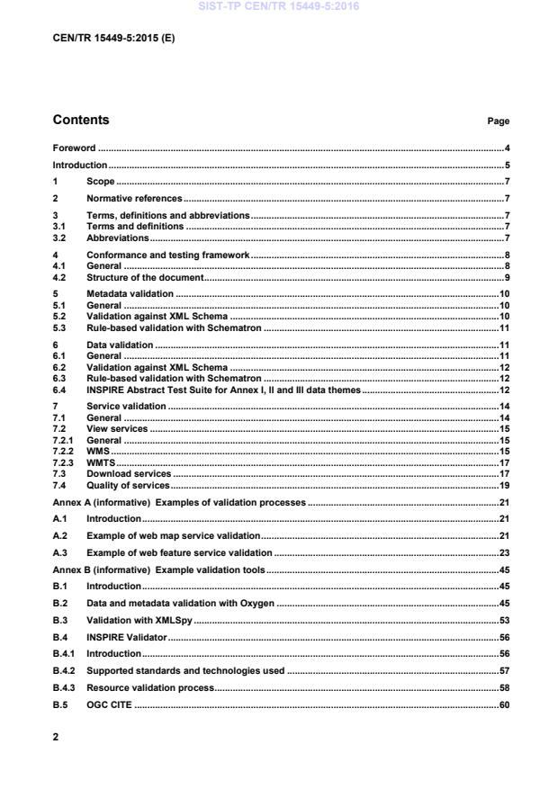 Ta del tehničnega poročila podaja napotke za validacijo in preskušanje podatkov, metapodatkov in storitev kot glavnih komponent infrastrukture za prostorske podatke, določene v drugih delih standarda CEN/TR 15449.