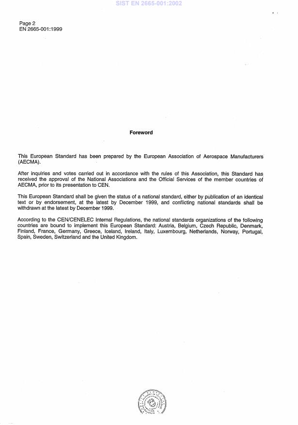 EN 2665-001:1999 has the following relationships with other standards: It is inter standard links to EN 2665-001:2013, EN 9133:2018. Understanding these relationships helps ensure you are using the most current and applicable version of the standard.