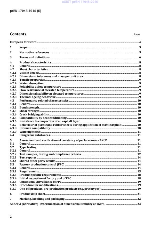 Keywords: FprEN 17048, flexible sheets for waterproofing, bridge waterproofing, plastic and rubber sheets, fully bonded waterproofing, test methods, AVCP, factory production control.