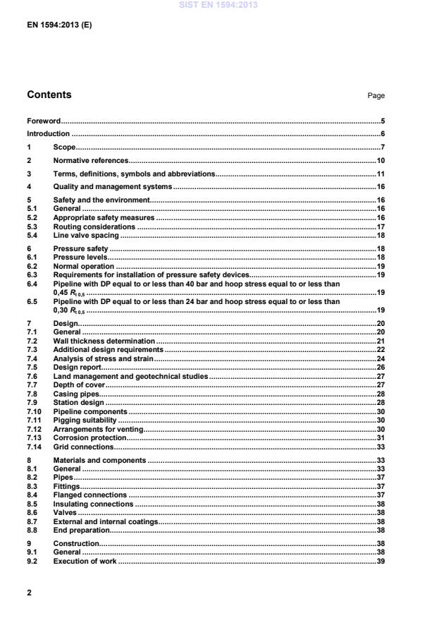 specially designed and manufactured for the pipeline. EXAMPLE 4 Measuring devices, valves, pressure regulators, safety valves, filters, heat exchangers, vessels. 3.31 pipeline operator private or public organisation authorised to design, construct and/or operate and maintain the gas infrastructure Note 1 to entry: Synonyms are: network operator, grid operator. 3.32 pipework assembly of pipes and fittings 3.33 point of delivery point where the gas is transferred to the user Note 1 to entry: This can be at a means of isolation or at a meter connection. 3.34 precommissioning activities, including cleaning and possible drying, executed prior to pipeline commissioning 3.35 pressure gauge pressure of the fluid inside the system, measured in static conditions 3.36 pressure control system combined system including pressure regulating, pressure safety and eventually pressure recording and alarm systems 3.37 pressure regulating system system which ensures that a pressure is maintained at the outlet system within required limits 3.38 pressure safety system system which, independent of the pressure regulating system, ensures that the outlet pressure of the pressure control system does not exceed the preset value SIST EN 1594:2013