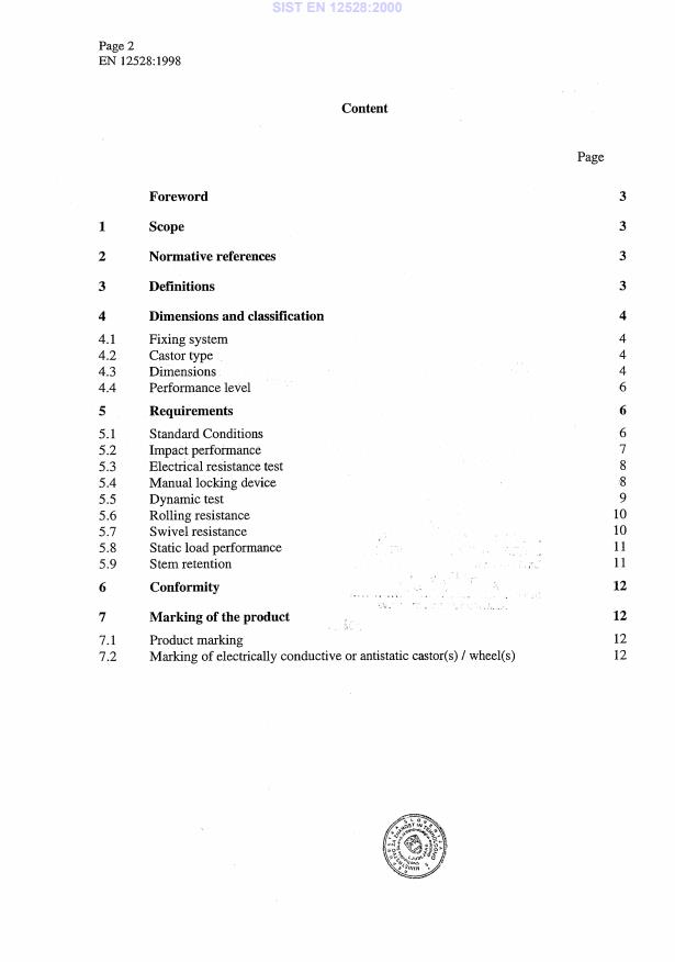 EN 12528:1998 - published by CEN and adopted in national versions (e.g., SIST EN 12528:2000) - is the European standard for castors for furniture. The standard defines the technical requirements, appropriate dimensions, and the requirements for testing that apply to castors intended for general furniture use. It explicitly excludes castors for swivel chairs and other specialised applications.