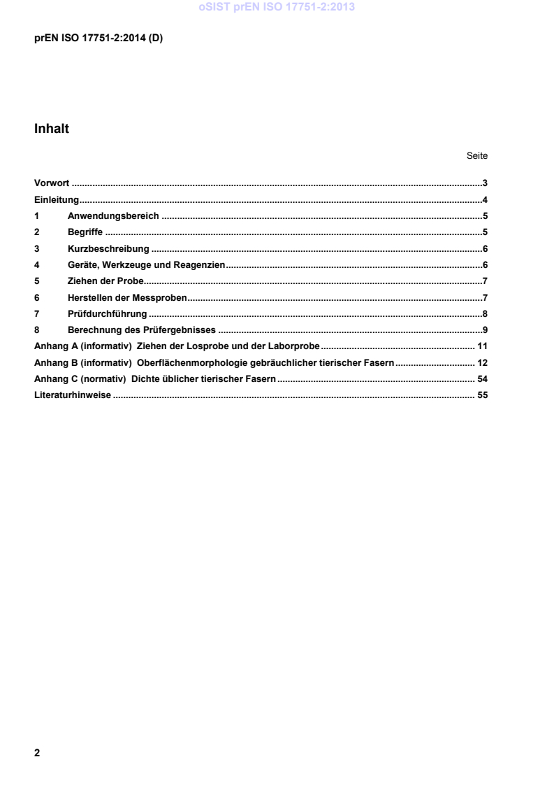 Der vorliegende Teil der ISO 17751 legt ein Verfahren zur Identifizierung sowie qualitativen und quantitativen Analyse von Kaschmir, Wolle, anderen speziellen tierischen Fasern und deren Mischungen mit dem Rasterelektronenmikroskop (REM) fest.