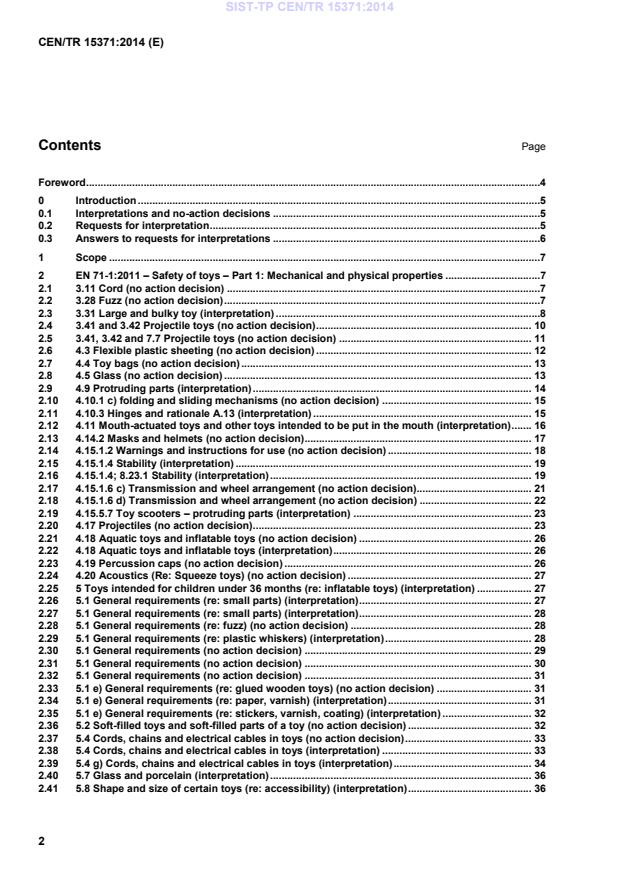 Der Zweck dieses Technischen Berichtes ist, Antworten auf Anfragen zur Interpretation von EN 71 1:2011, Sicherheit von Spielzeug — Teil 1: Mechanische und physikalische Eigenschaften, EN 71 2:2011, Sicherheit von Spielzeug — Teil 2: Entflammbarkeit und EN 71 8:2011, Sicherheit von Spielzeug — Teil 8: Aktivitätsspielzeug für den häuslichen Gebrauch bereitzustellen.