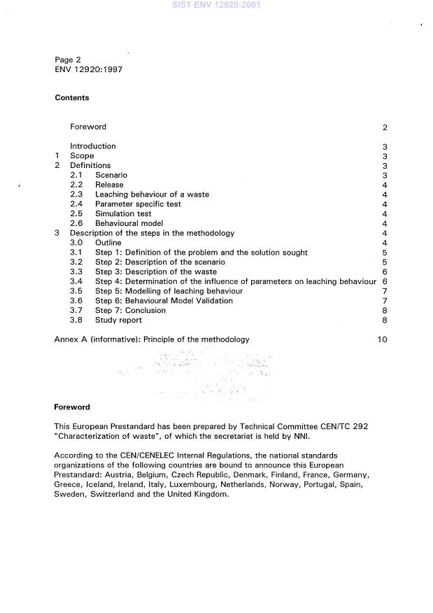 ENV 12920:1997 is a standardization document published by the European Committee for Standardization (CEN). Its full title is "Characterization of waste - Methodology for the determination of the leaching behaviour of waste under specified conditions". This standard covers: This prestandard specifies a methodology for the determination of the leaching behaviour of a waste under specified conditions (i.e. for a specified scenario including a specified time frame) in order to provide a solution to a defined problem. This applies to disposal and utilization scenarios. The external conditions which have a direct influence on the release of constituents from a waste are considered.