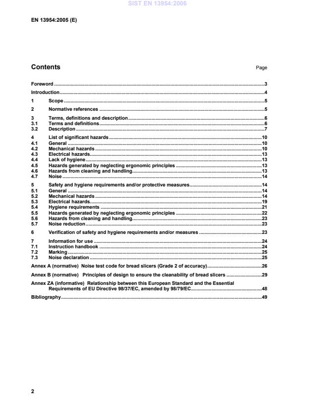EN 13954:2005 is a standard published by the European Committee for Standardization (CEN). Its full title is "Food processing machinery - Bread slicers - Safety and hygiene requirements". This standard covers: 1.1 This document specifies safety and hygiene requirements for the design and manufacture of bread slicing machines of type 1 and 2 as defined in Clause 3. The intended use of these machines is to cut baked bread into slices. This document deals with all significant hazards, hazardous situations and events relevant to bread slicers machines, when they are used as intended and under conditions of misuse which are reasonably foreseeable by the manufacturer (see Clause 4). This document covers requirements for the safe operation of the machine including: loading, cutting, unloading, cleaning, crumb removal and maintenance. These machines can be manually or automatically operated. 1.2 The following machines are excluded from the scope of this document: - experimental and testing machines under development by the manufacturer; - frame cutter machines with multiple blades moving horizontally; - domestic appliances and machines intended for use by the general public; - machines with horizontal circular cutting systems; - rectangular cutting machines for cutting or sawing of panel size products into small pieces. The significant hazards covered by this document are described in Clause 4. 1.4 In writing this document, it has been assumed that the bread slicers falling within the scope are operated only by trained personnel and that the machines are not intended to be cleaned with water jet. 1.5 This document applies to bread slicing machines which are manufactured before the date of publication by CEN of this document.