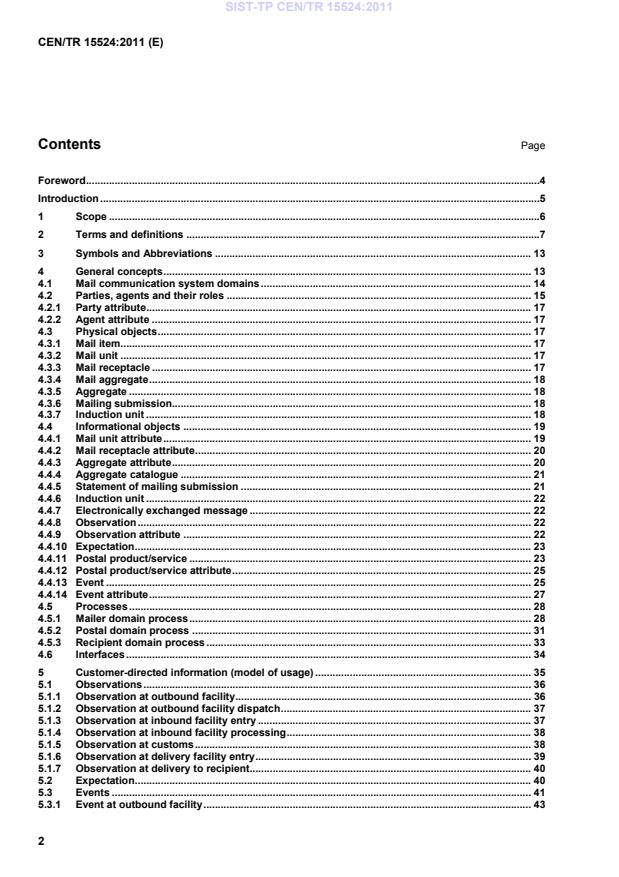This Technical Report consists of three parts. The first part defines, describes and explains basic concepts typical to all mail communication systems such as; domains, parties, agents and their role in the system, physical and informational objects, processes, interfaces and relationships. The first part does not cover more detailed technical aspects of the main concepts such as: - a detailed description of mail units and sets, their attributes and methods of collection/capture of their values; - applications describing specific use of the information describing basic objects by mailers, postal operators and recipients; - data elements, data constructs and message descriptions; - communication protocols and infrastructure for message transport including transport of messages through a print-scan channel (or paper channel); - message security issues related to individual messages: confidentiality and integrity of data, authentication and non-repudiation; - printing symbology, physical placement of data elements and symbols, their orientation and dimensions, and inks and print quality. The second part of this Technical Report defines the necessary and sufficient concepts for customer directed information that can be captured by post and made accessible to customers using post mailer interface. This report explains and describes relationships between these concepts. This report provides a comprehensive list of mail unit attributes that are involved in forming observations and events significant for postal customers. This report describes a methodology suitable for the selection of observation points within postal domain process where information collected in observations is most useful for customers. The report does not cover: - applications describing the use of collected event information; - messages and protocols; - communication infrastructure. The third part of this Technical Report describes: - a list of specific events knowledge of which is valuable to postal customers (mail senders and recipients) and could be made available to such customers; - underlying mail unit attributes that form corresponding observations; - data construct supporting practical access to information collected within postal domain about events, underlying observations and expectations, and in particular information about events, observations and expectations that are valuable to postal customers. This Technical Report also provides an example of application that demonstrates the use of specific events and data constructs. This Technical Report makes use of XML schema in describing relevant data constructs. Actual communication messages can be built from data constructs described in this report. However, this report does not specify the structure of specific messages, nor does it preclude using mechanisms other than XML schema to describe data constructs.