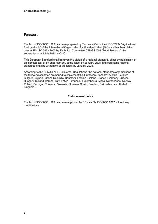over as EN ISO 3493:2007 by Technical Committee CEN/SS C01 "Food Products", the