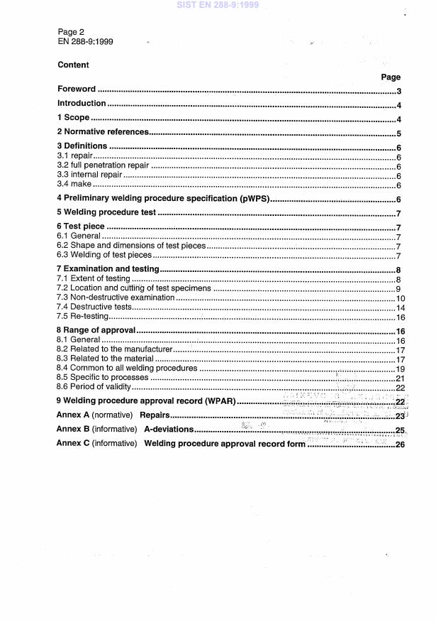 EN 288-9:1999 has the following relationships with other standards: It is inter standard links to EN 13814:2004, EN ISO 13710:2004, EN ISO 15614-10:2005, EN ISO 10437:2003, EN 13223:2004, EN ISO 21049:2004. Understanding these relationships helps ensure you are using the most current and applicable version of the standard.