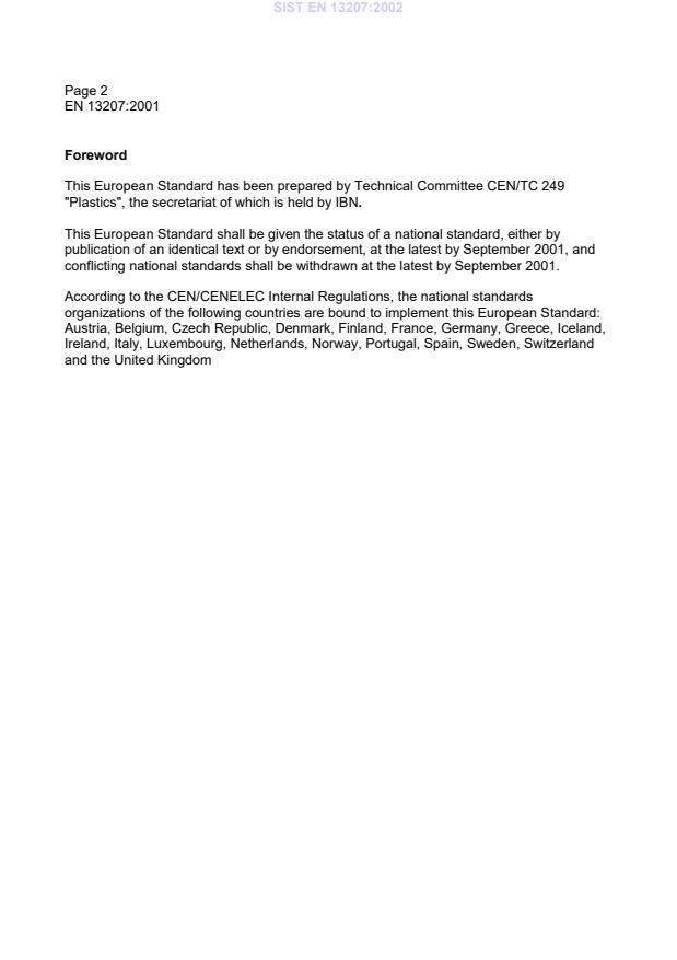 EN 13207:2001 is classified under the following ICS (International Classification for Standards) categories: 65.040.20 - Buildings and installations for processing and storage of agricultural produce; 83.140.10 - Films and sheets. The ICS classification helps identify the subject area and facilitates finding related standards.