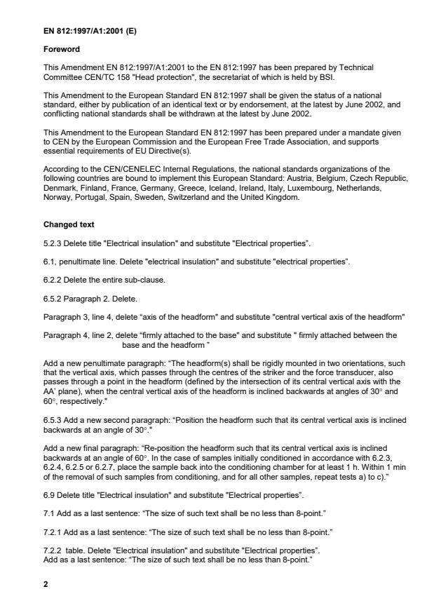 This Amendment EN 812:1997/A1:2001 to the EN 812:1997 has been prepared by Technical